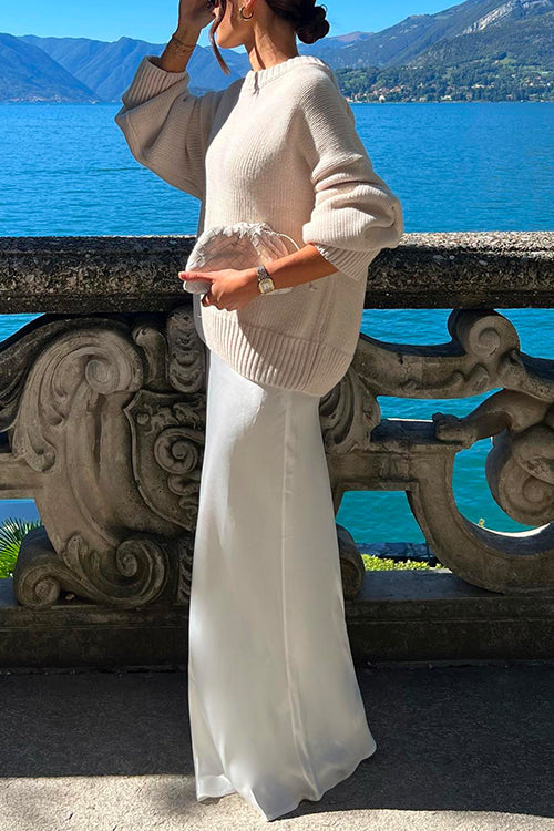 Karleedress Crewneck Drop Shoulder Loose Fit Solid Sweater