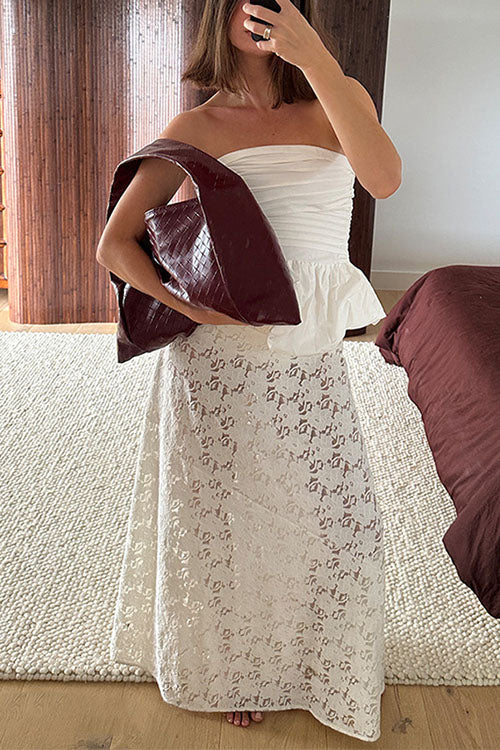 Karleedress Elastic WaistBand Lace Hollow Out Maxi Skirt