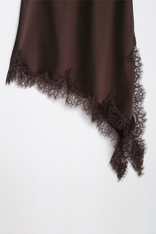 Karleedress Adjustable Strap V Neck Lace Trim Satin Top