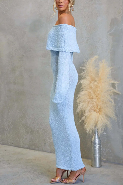 Karleedress Off Shoulder Long Sleeves Bodycon Stretchy Maxi Dress